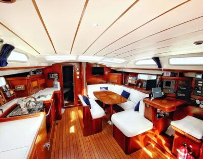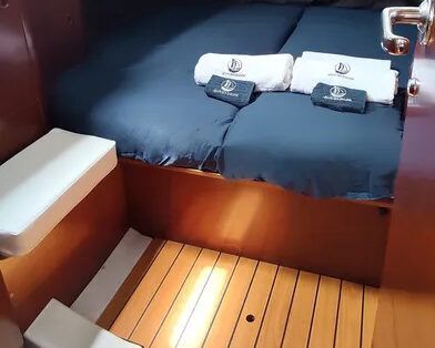 Este velero de 16,5 metros puede alojar cómodamente hasta 11 personas + patrón.